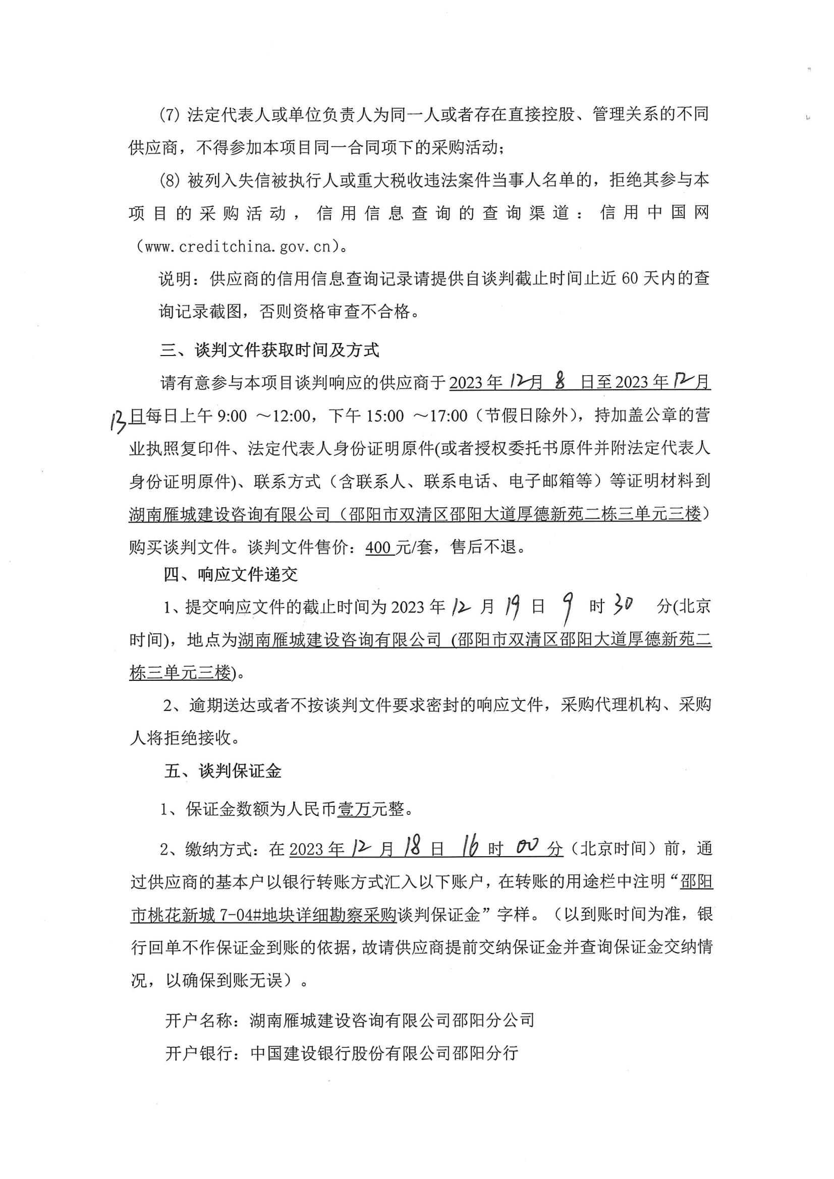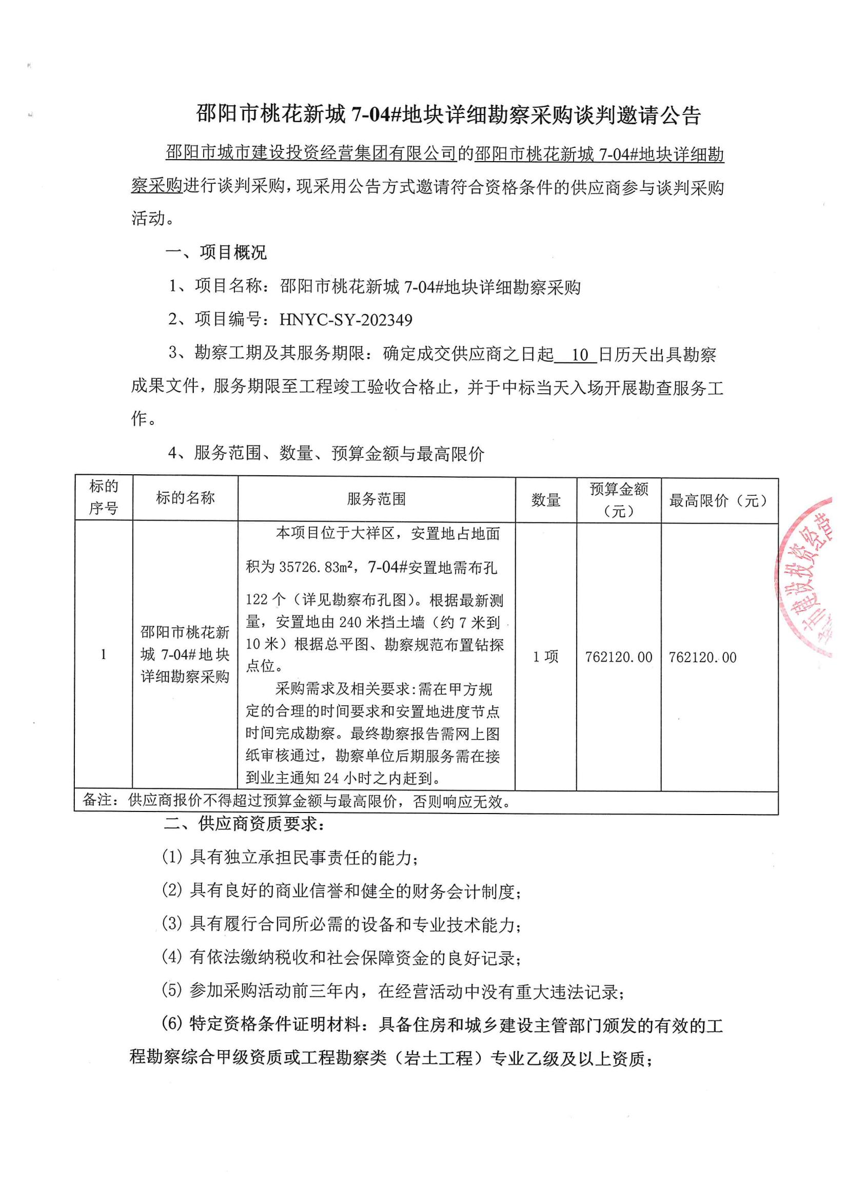 邵陽市桃花新城7-04地塊詳細(xì)勘察采購談判邀請公告