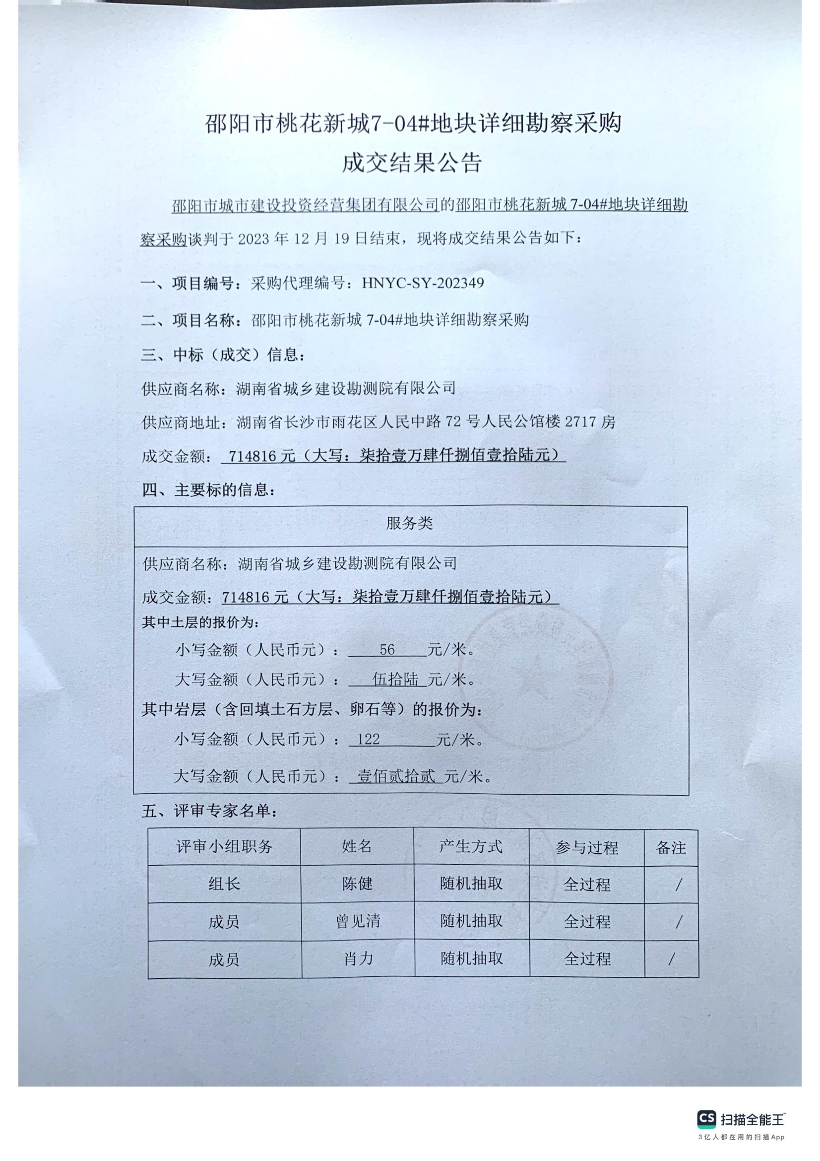 邵陽市桃花新城7-04#地塊詳細勘察采購成交結果公告