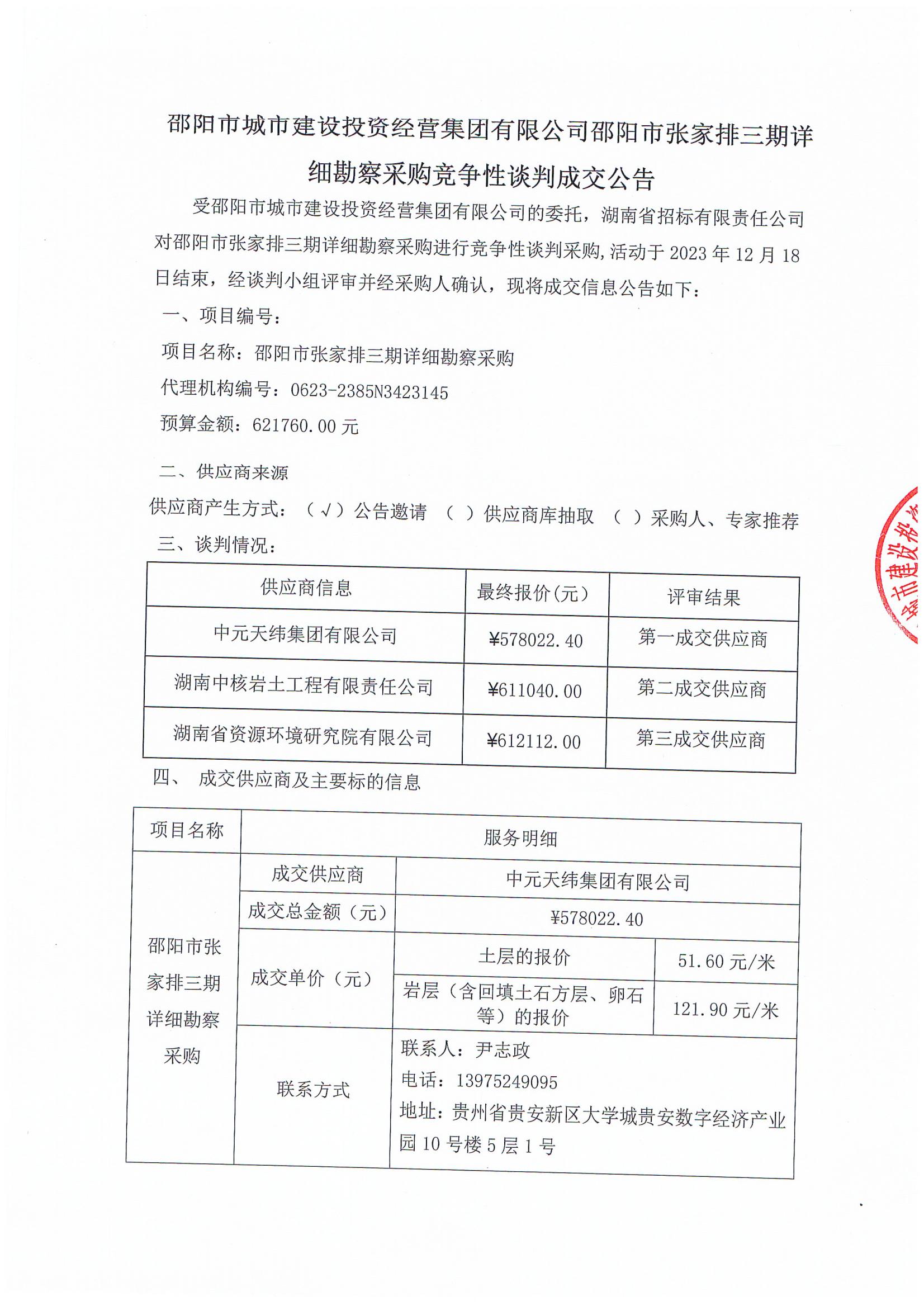 邵陽(yáng)市張家排三期詳細(xì)勘察采購(gòu)競(jìng)爭(zhēng)性談判成交公告