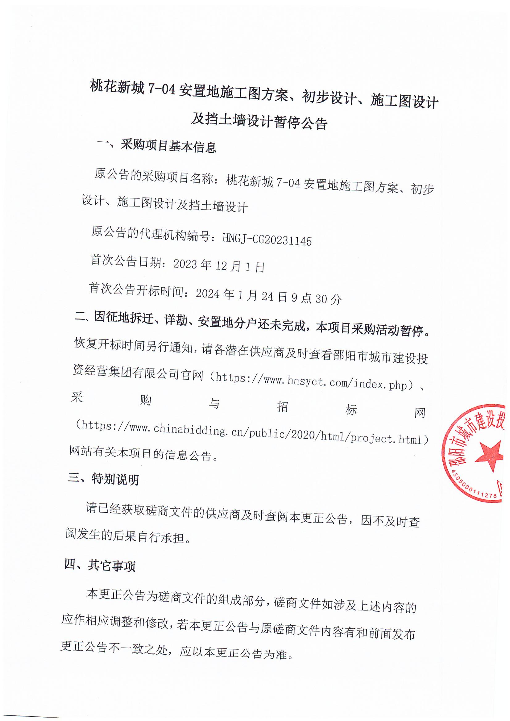 桃花7-04安置地安置地施工圖設(shè)計、初步設(shè)計及擋土墻設(shè)計暫停公告