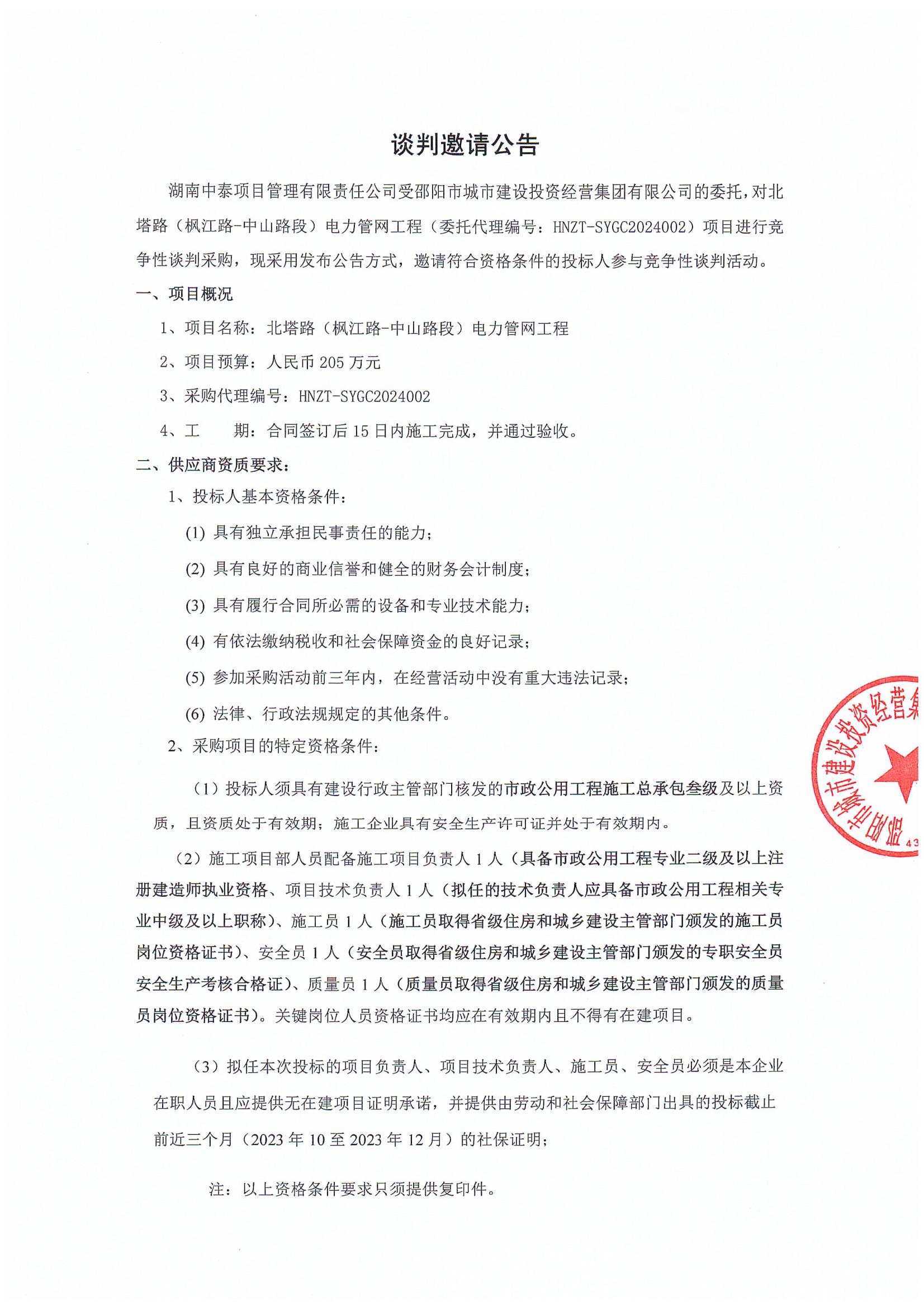 北塔路(楓江路-中山路)電力管網(wǎng)工程談判邀請
