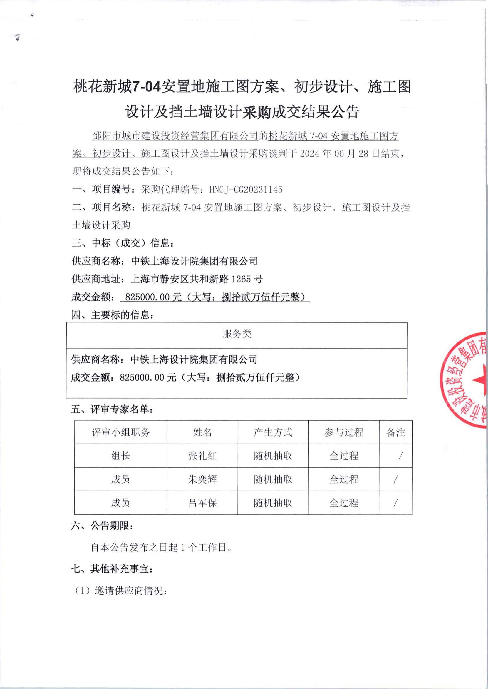 桃花新城 7-04#安置地目施工圖方案、初步設(shè)計及施工圖設(shè)計及擋土墻設(shè)計成交公告