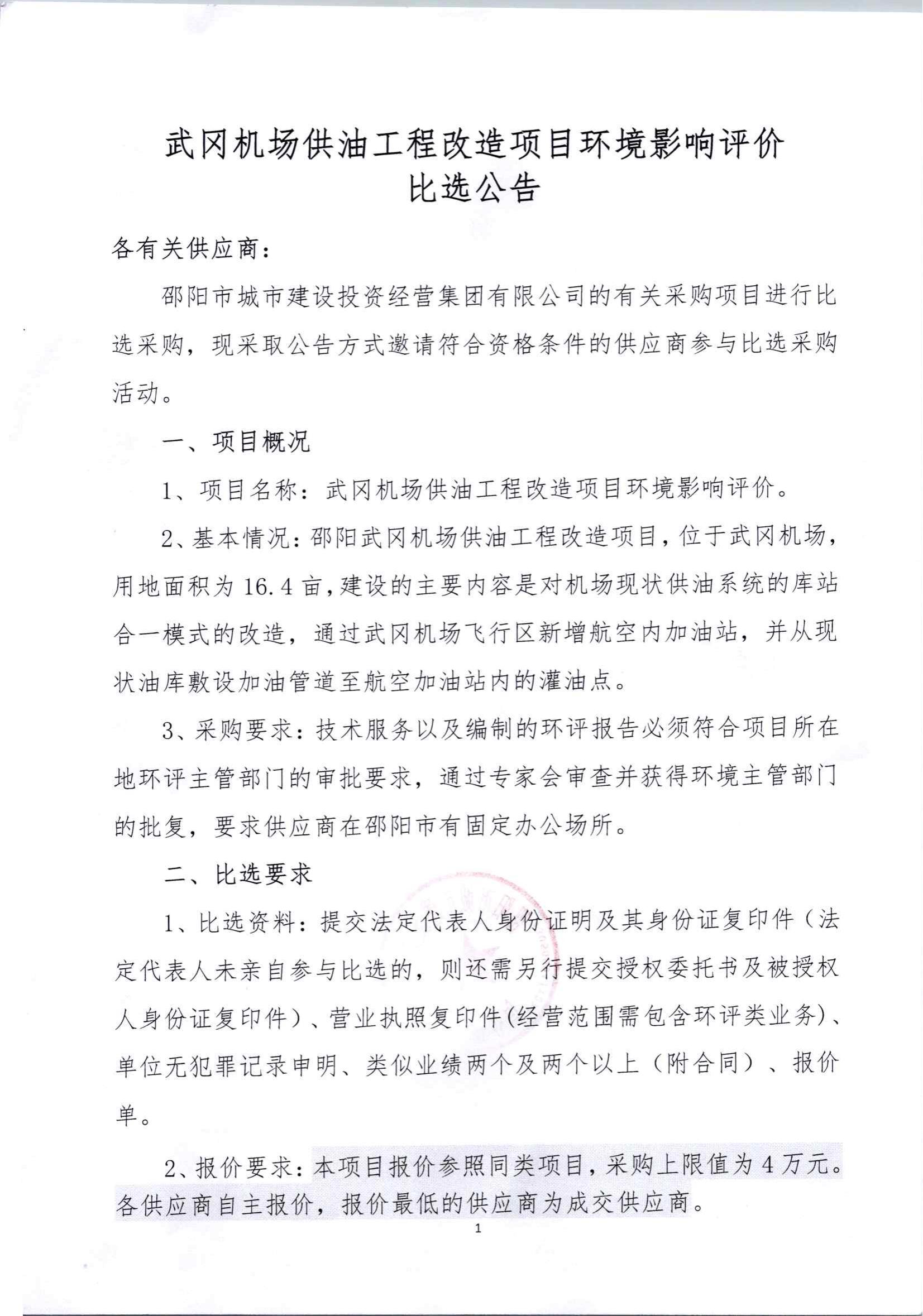 7.25比選公告武岡機(jī)場(chǎng)供油工程改造項(xiàng)目環(huán)境影響評(píng)價(jià)編制