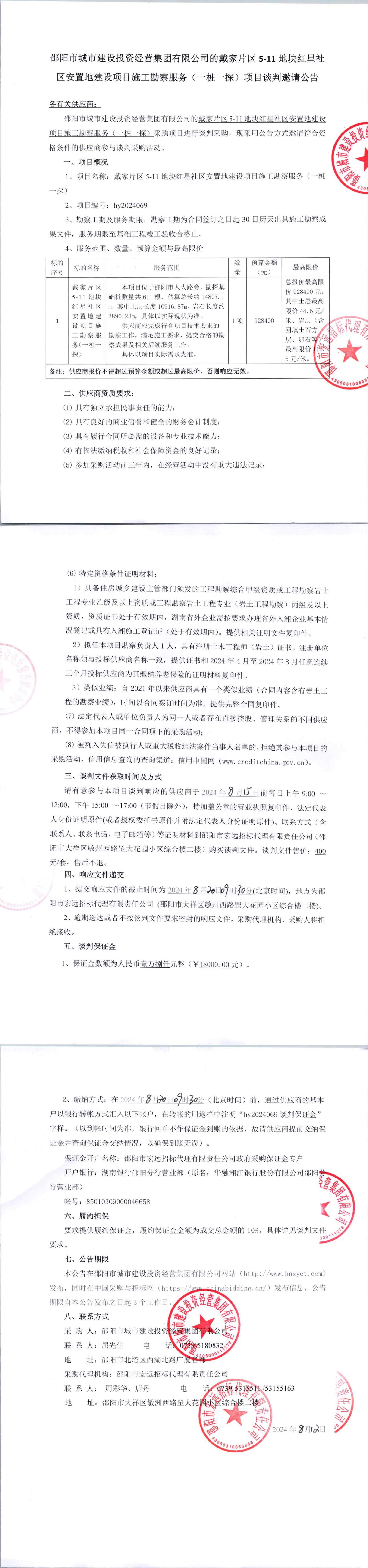 戴家片區(qū)5-11地塊紅星社區(qū)安置地建設(shè)項(xiàng)目施工勘察服務(wù)談判邀請(qǐng)公告