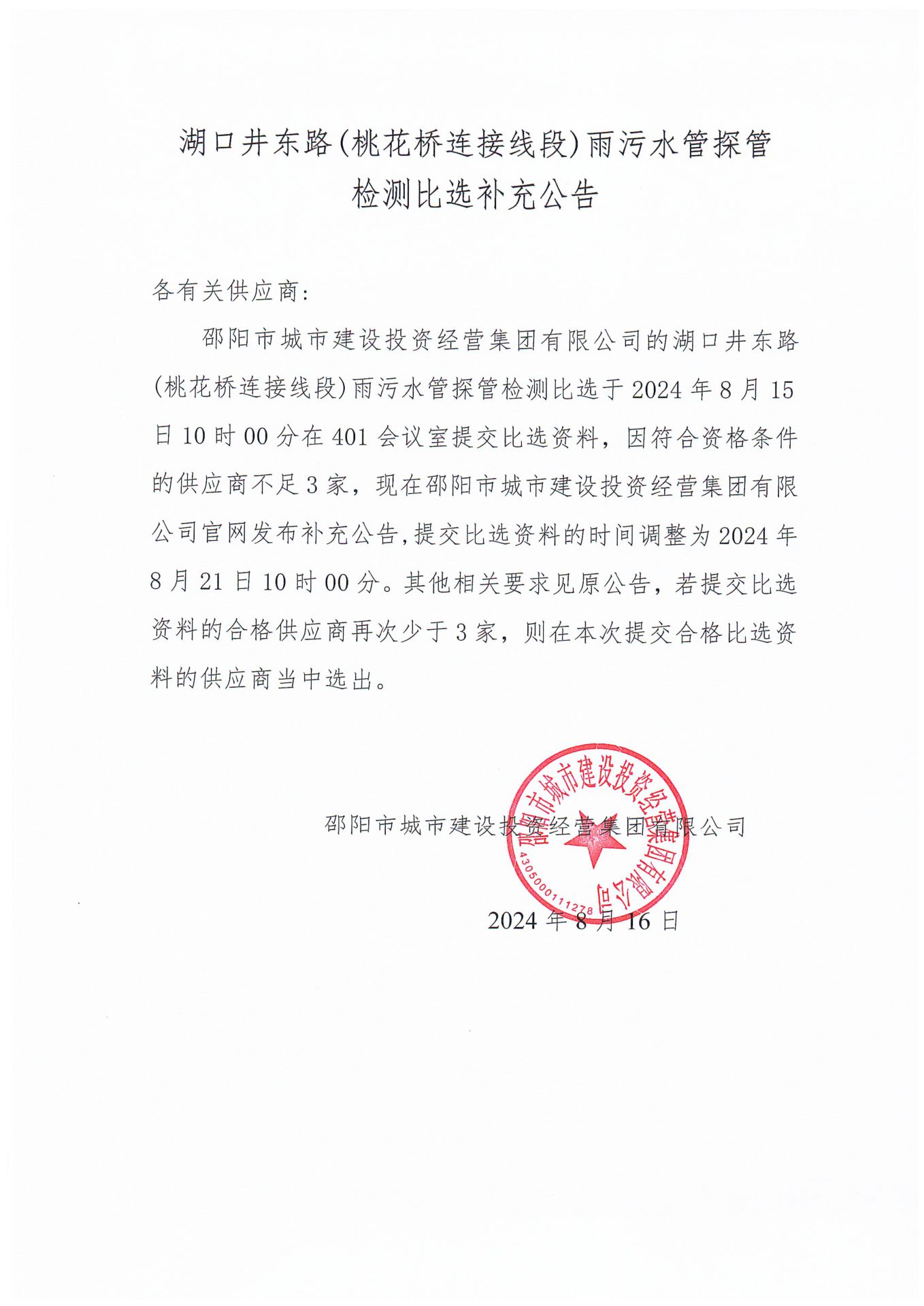 湖口井東路(桃花橋連接線段)雨污水管探管檢測比選補充公告