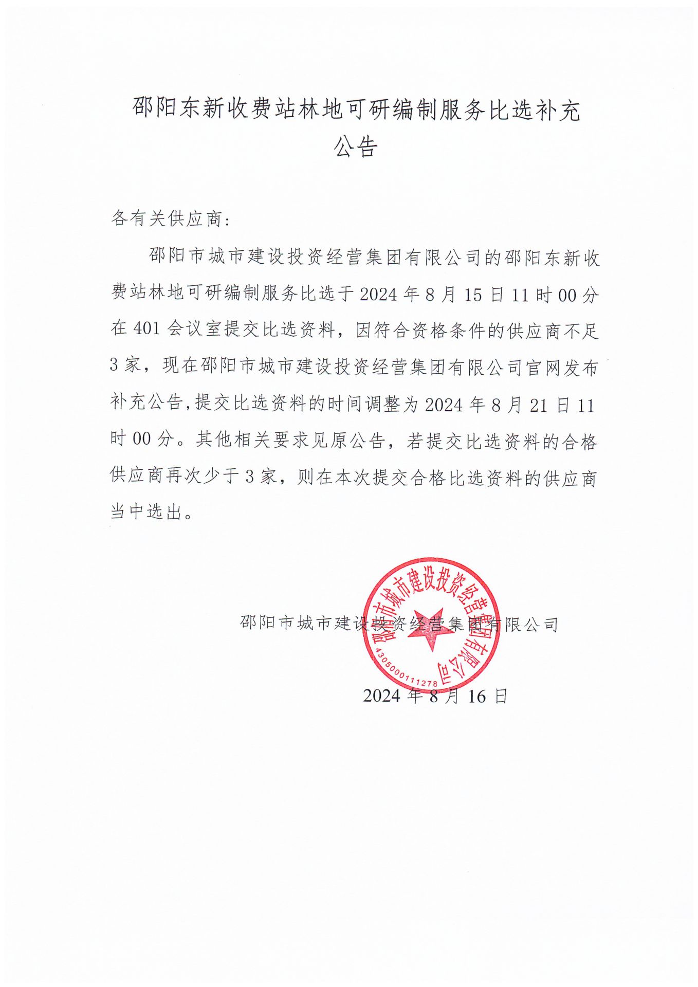 邵陽(yáng)東新收費(fèi)站林地可研編制服務(wù)比選補(bǔ)充公告