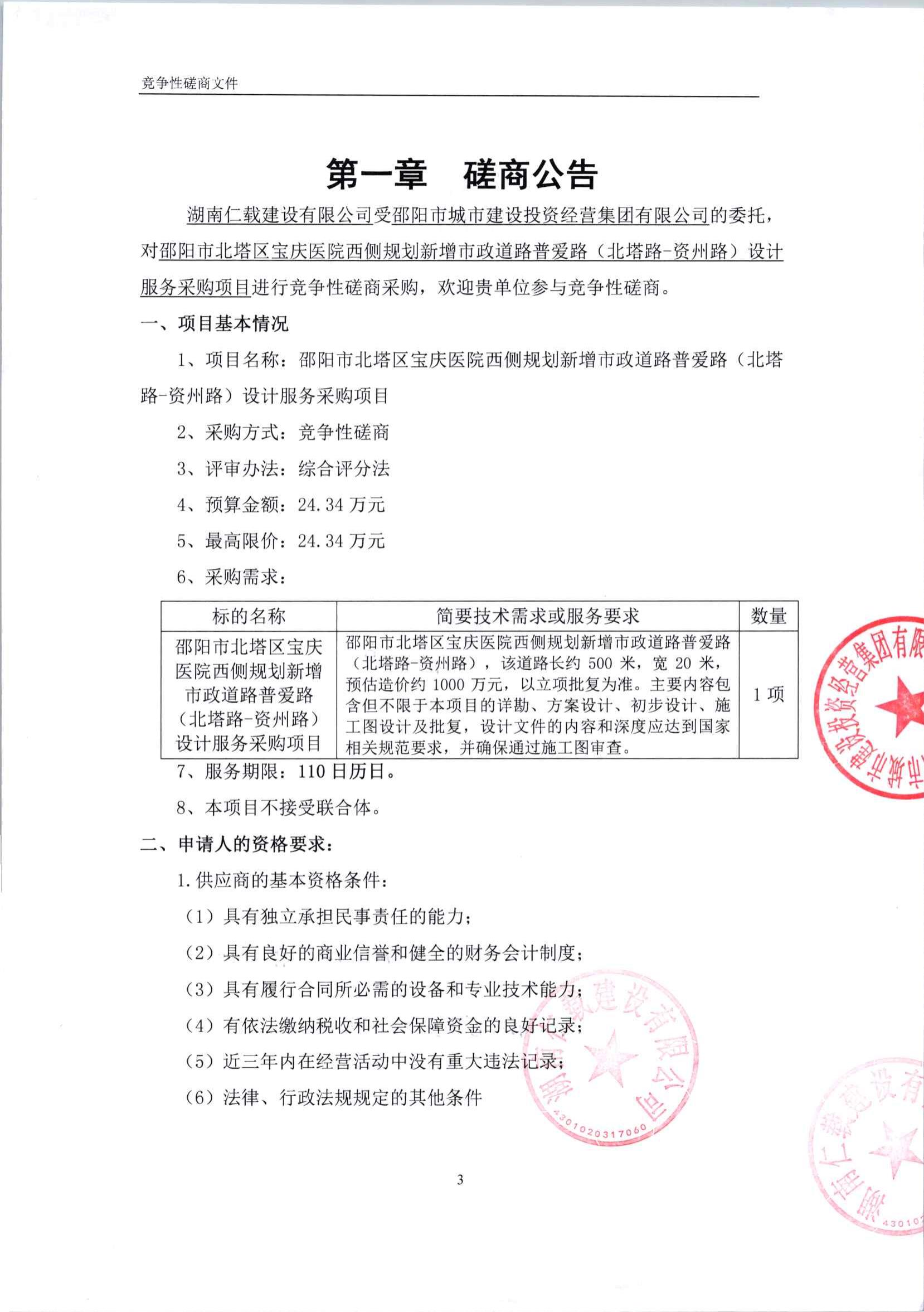 邵陽(yáng)市望冠路、支路二(龍?jiān)绰?南山路)、寶苑路道路工程監(jiān)理競(jìng)爭(zhēng)性談判成交..