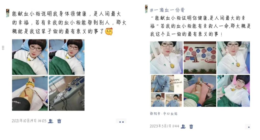 佘榮韻與無償獻(xiàn)血結(jié)緣,源于七年前一段刻骨銘心的經(jīng)歷。2017年,佘榮韻的父親病重,每個(gè)月都需要到醫(yī)院輸注血小板,正是因?yàn)橛性S多無償獻(xiàn)血者的愛心接力,她父親的病情才得以緩解。從那之后,佘榮韻對(duì)捐獻(xiàn)血小板知識(shí)有了更多的了解,她默默下定決心,自己也要加入捐獻(xiàn)血小板的隊(duì)伍,幫助更多的人。
