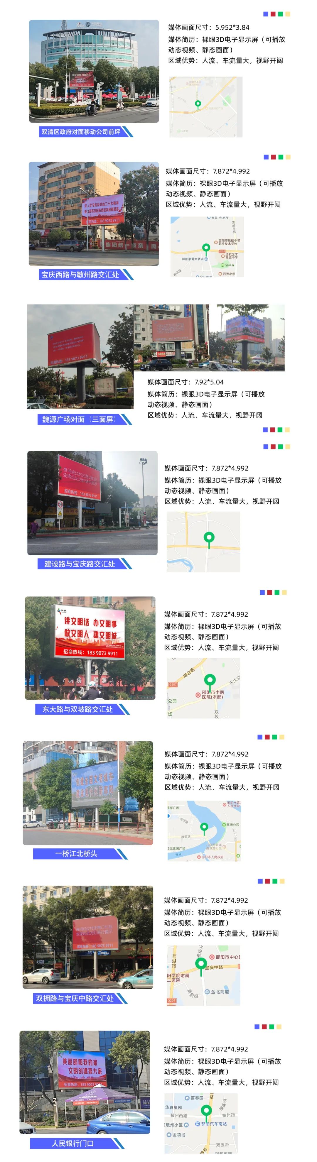 據了解,為強化經營性項目運作,充分發(fā)揮戶外廣告位特許經營權價值,邵陽城投城市文化傳媒在八個路段布局了十塊高清3D裸眼電子屏。這些屏幕坐落于邵陽市區(qū)各大核心路口,融合高清顯示、智能操控與節(jié)能科技,以裸眼3D技術帶來前所未有的視覺沖擊與互動體驗。