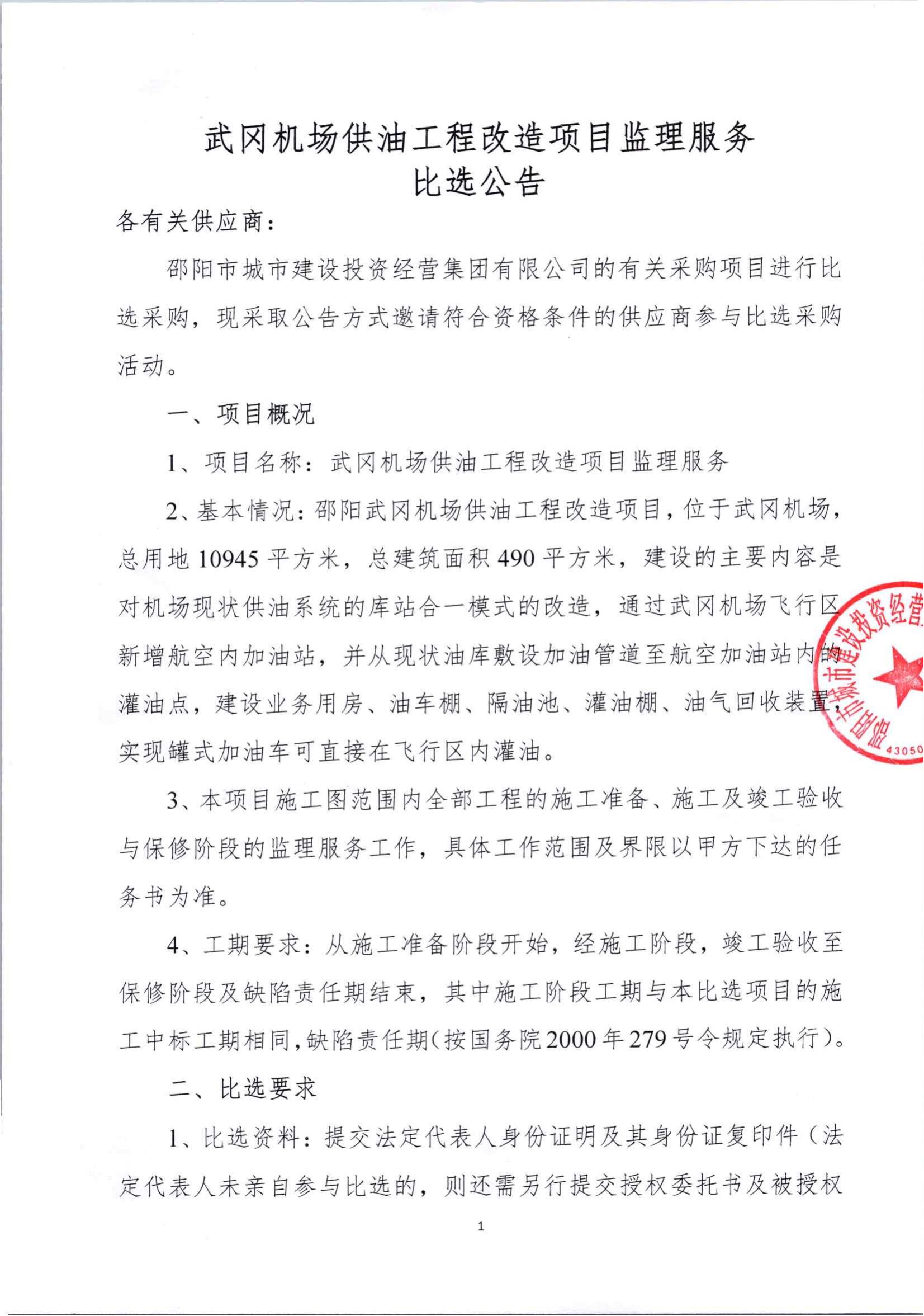 武岡機(jī)場供油工程改造項(xiàng)目監(jiān)理服務(wù)比選公告