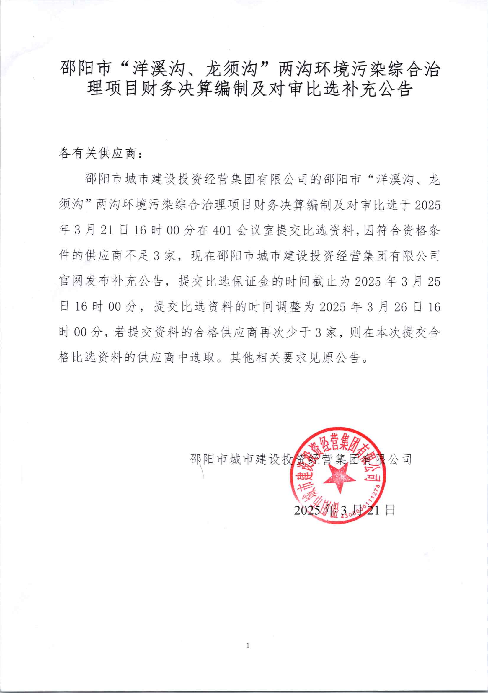 兩溝環(huán)境污染治理項目財務編制對審比選公告補充公告