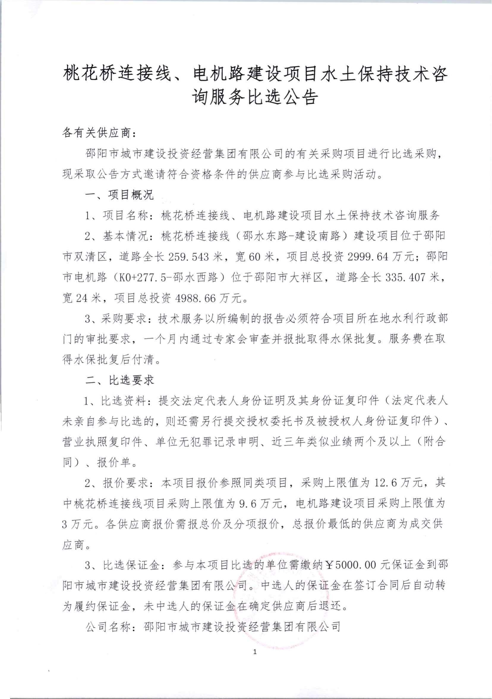桃花橋連接線及電機(jī)路水土保持水土保持技術(shù)咨詢服務(wù)比選成交結(jié)果公告..