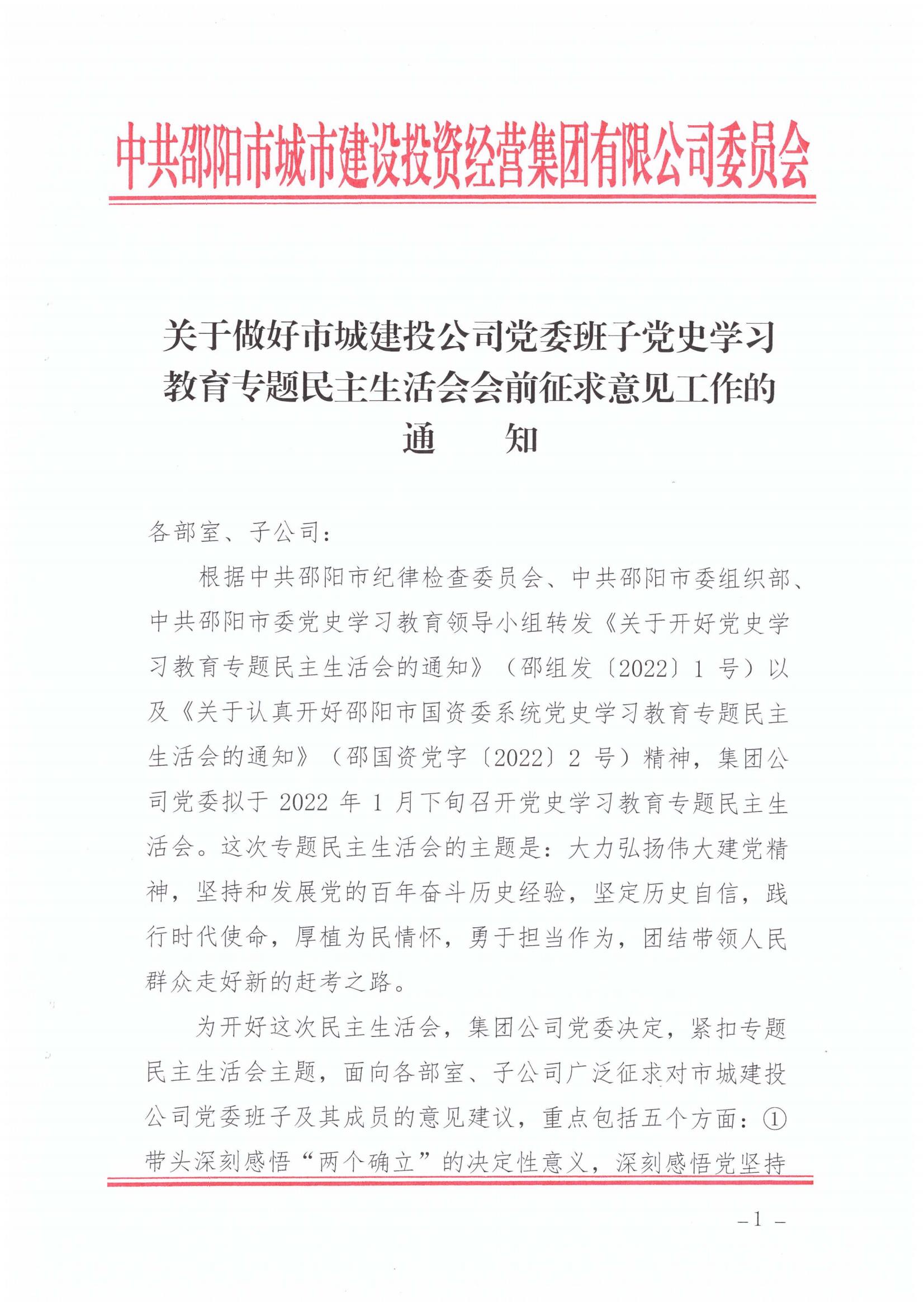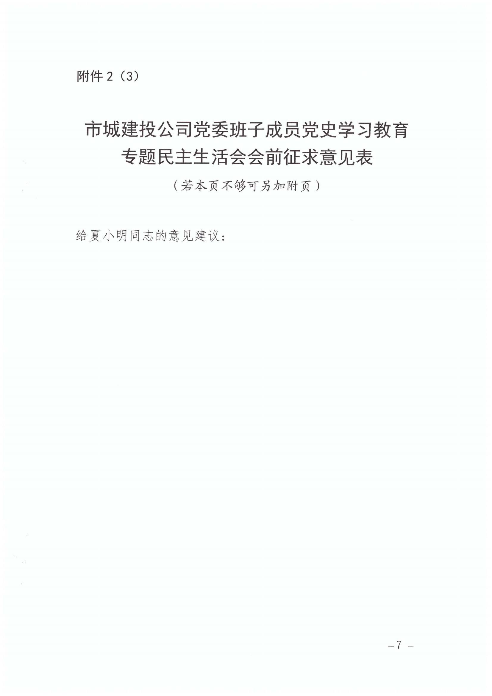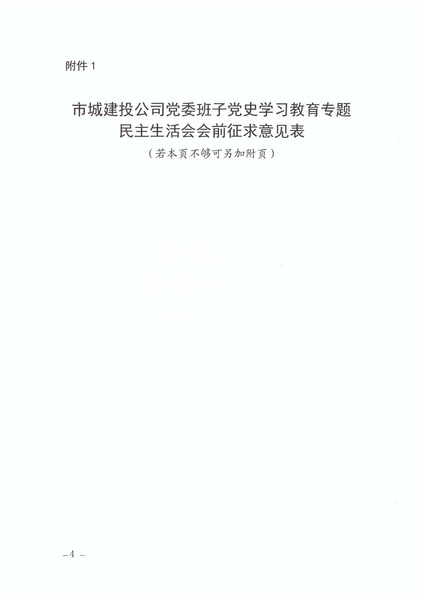 關(guān)于做好市城建投公司黨委班子黨史學(xué)習(xí)教育專題民主生活會會前征求意見工作的通知