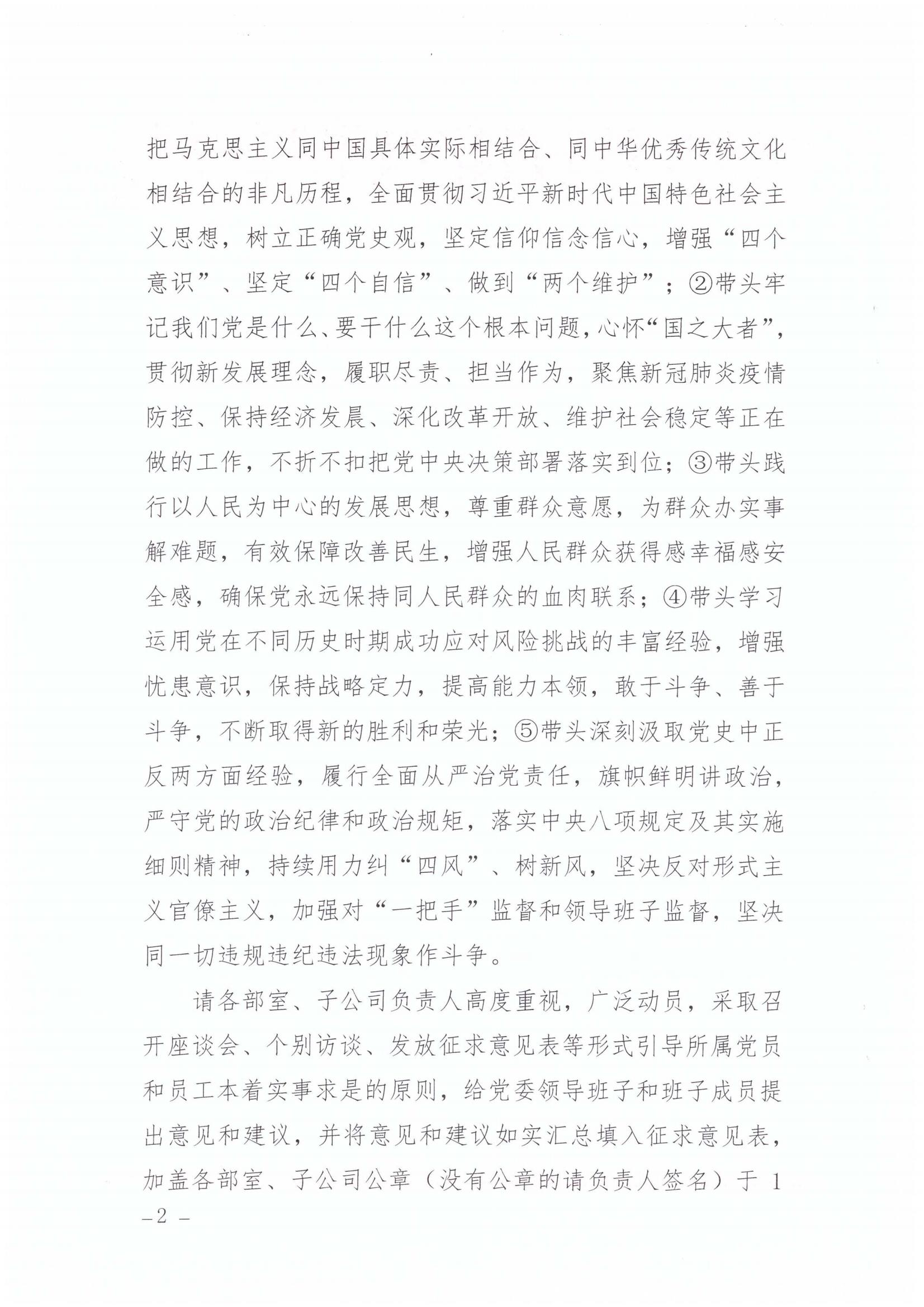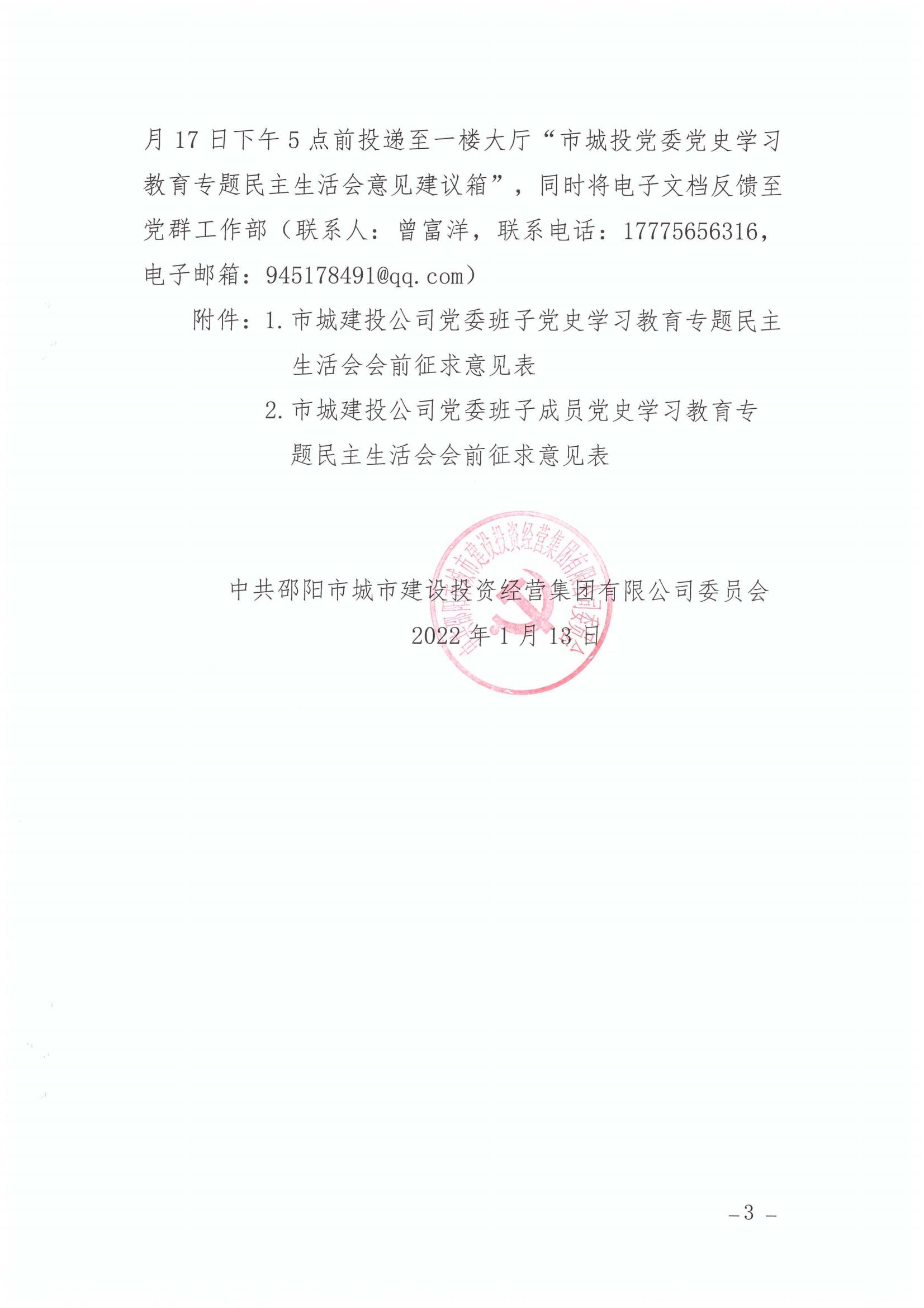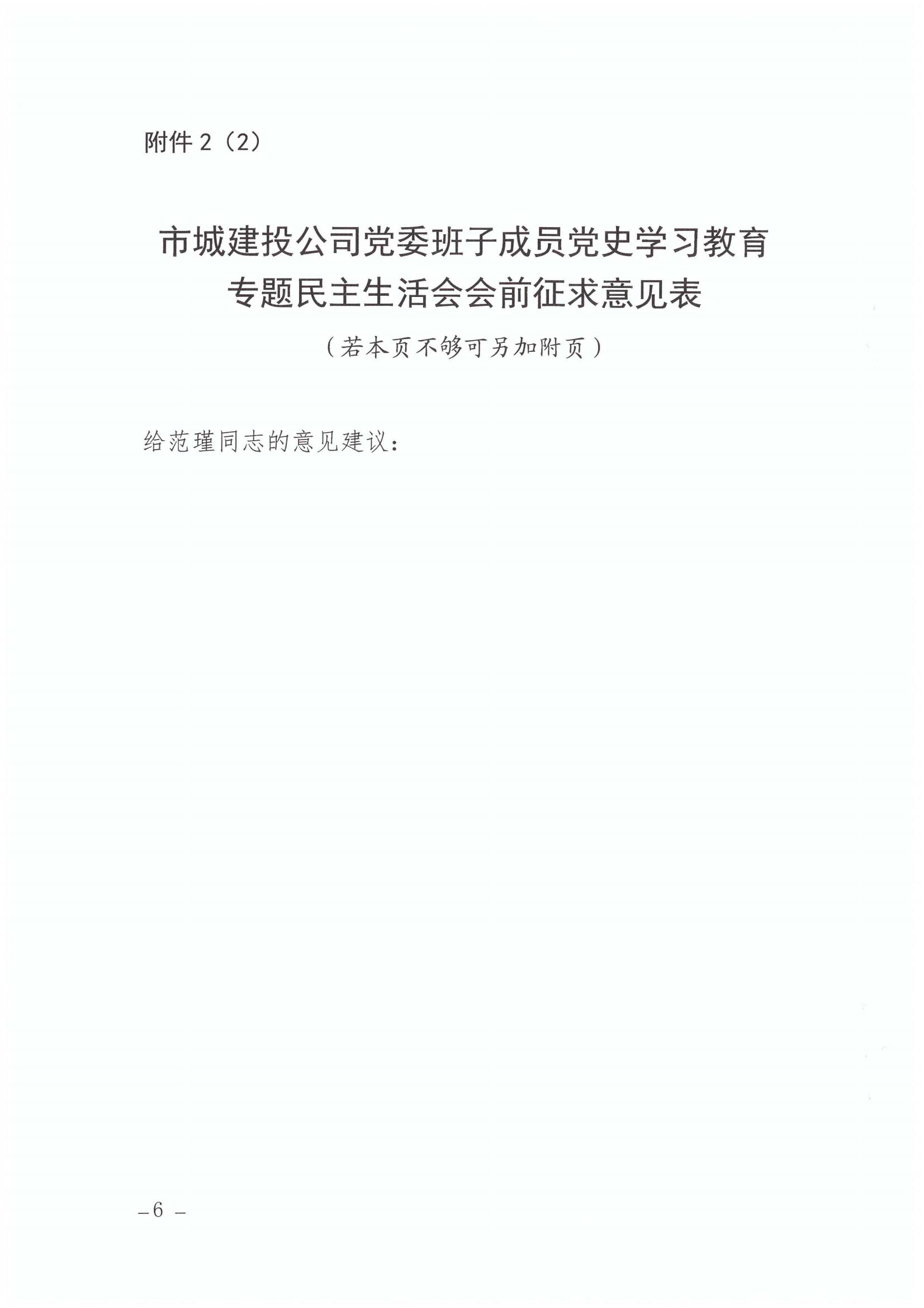 關(guān)于做好市城建投公司黨委班子黨史學(xué)習(xí)教育專題民主生活會會前征求意見工作的通知