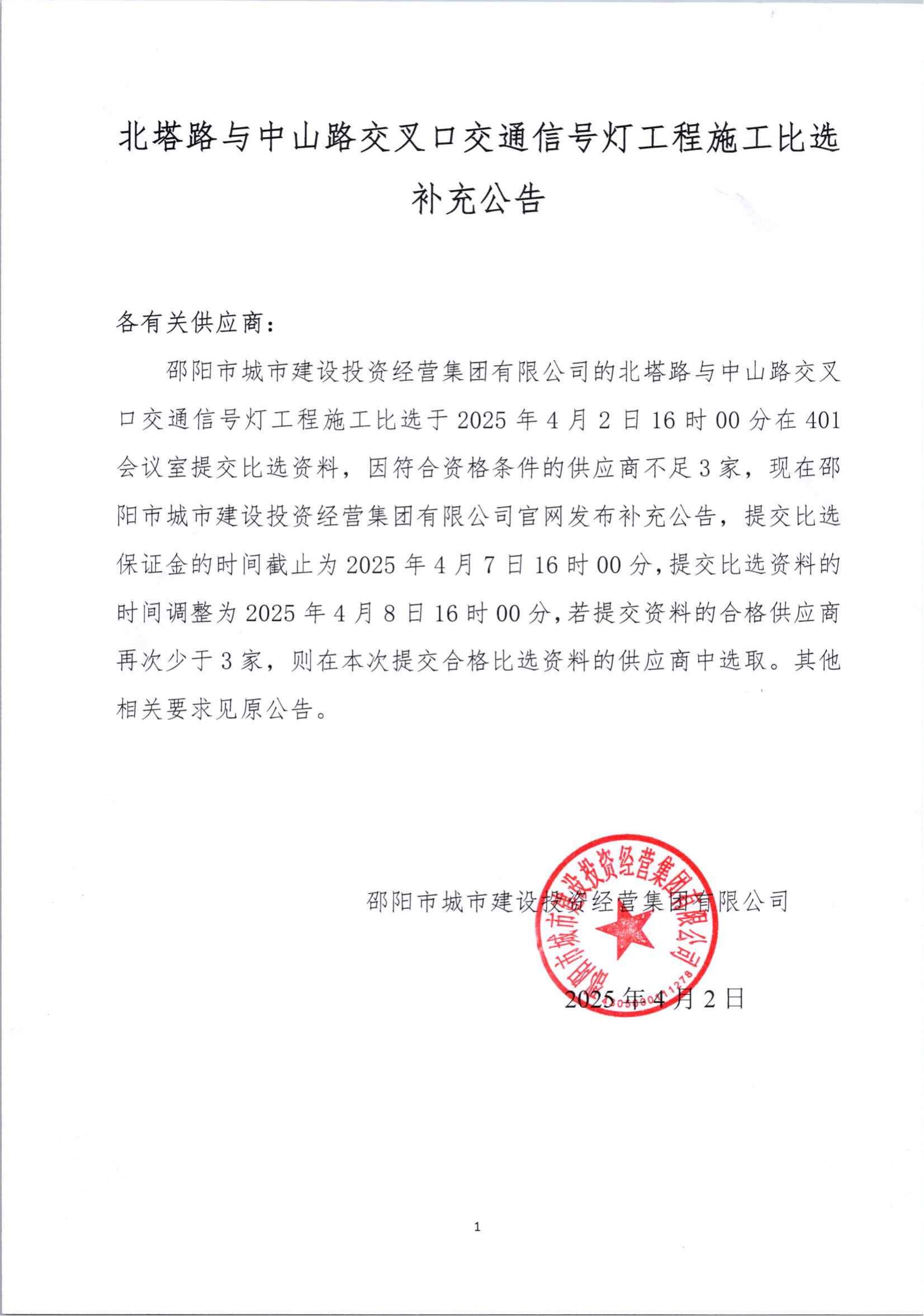 4.3北塔路與中山路交叉口信號燈工程比選補(bǔ)充公告