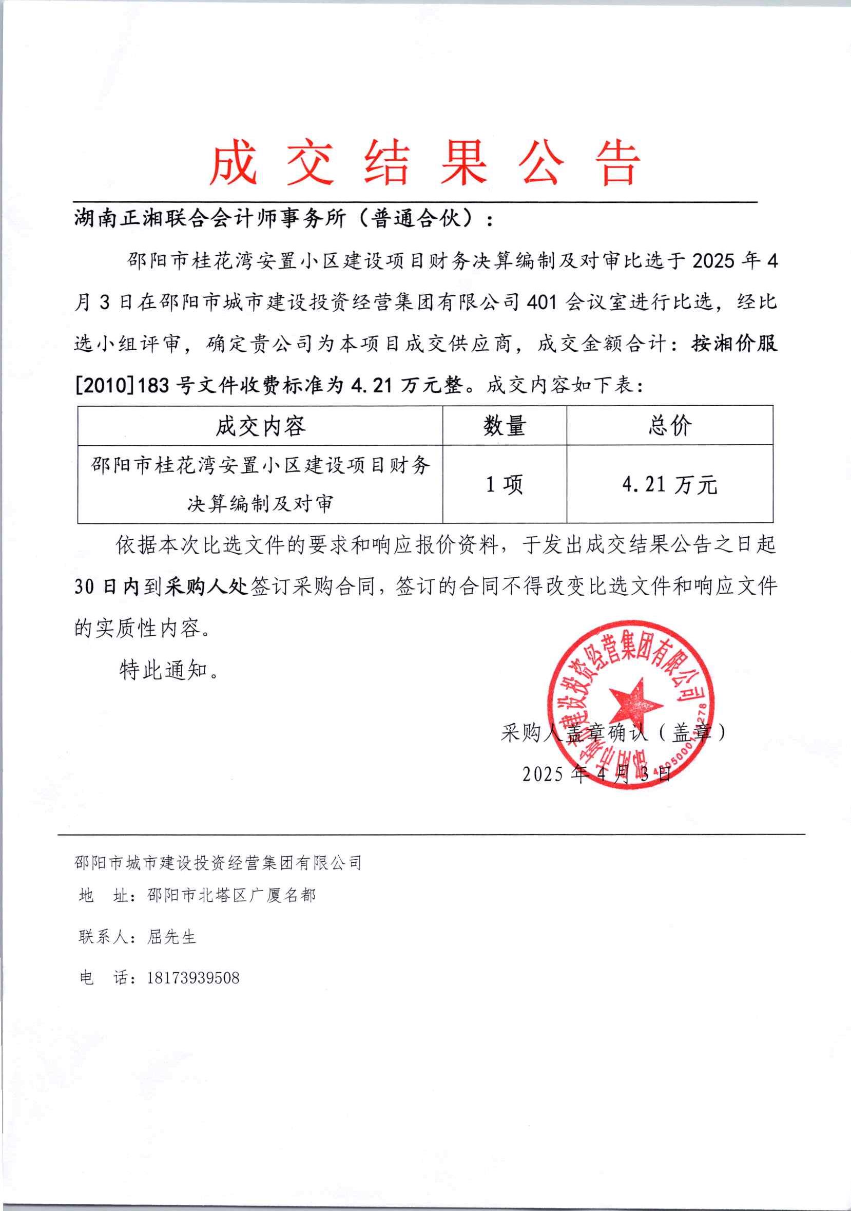 桂花灣安置小區(qū)建設(shè)項(xiàng)目財(cái)務(wù)編制對(duì)審成交公告