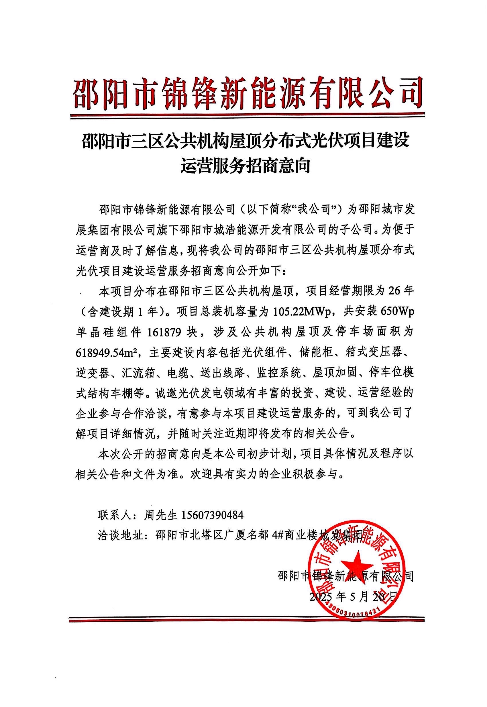 邵陽市三區(qū)公共機(jī)構(gòu)屋頂分布式光伏項(xiàng)目建設(shè)運(yùn)營服務(wù)招商意向