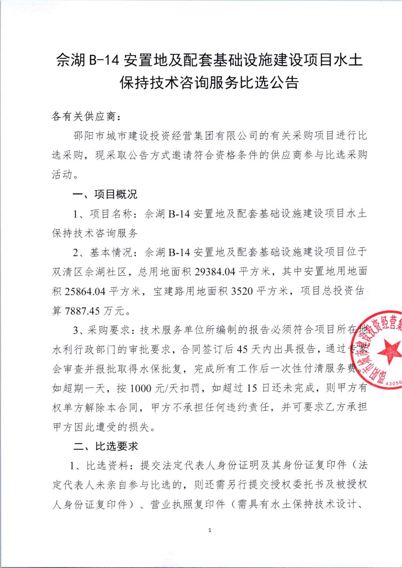 佘湖B-14安置地及配套基礎(chǔ)設(shè)施建設(shè)項(xiàng)目水土保持技術(shù)咨詢服務(wù)比選公告..