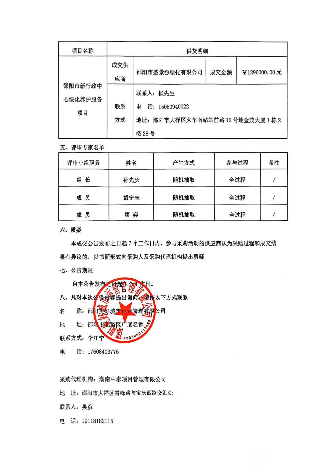 邵陽市新行政中心綠化養(yǎng)護(hù)服務(wù)項目競爭性磋商成交公告..